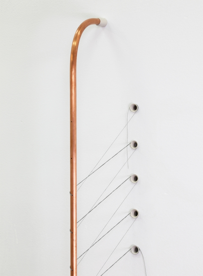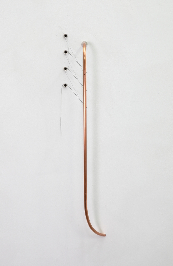 ‘drafting’, 2023; copper, thread, painted brass; 4 × 24 × 4 inches