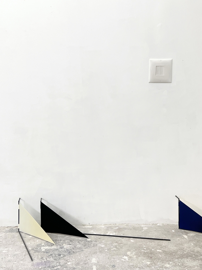 ‘sails’, 2024; aluminum, paint, charcoal powder, fiberglass, 9.5 × 17 inches