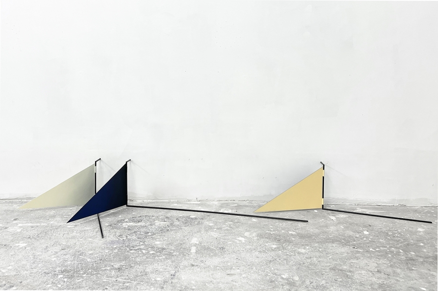 ‘sails’, 2024; aluminum, paint, graphite and charcoal powder, fiberglass